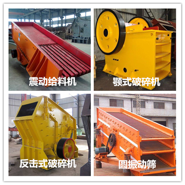 颚式破碎机1台、振动给料机1台、反击式破碎机1台、圆振动筛1台等。