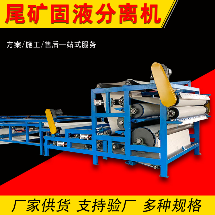 泥沙压滤机由滚筒、导料槽、重锤张紧设备及电器操控设备等组成。输送带绕经传动滚筒和尾部改向滚筒构成环行关闭带。托辊承载输送带及上面输送的物料。张紧设备使输送带具有足够的张力,确保与传动滚筒间产生冲突力使输送带不打滑。泥沙压滤机因为榨辊选用不同的布置与组合可构成很多不同的机型。