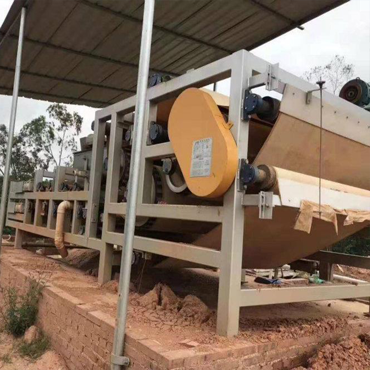 能够通过增加污泥浓缩池的方法进行改进,经污泥浓缩池后,污泥浓度可提高30-10%左右,从而避免因污泥浓度过低导致漏泥的情况。洗沙压滤机处理设备对调质的依赖性强,假如加药量不足,调质作用欠安,污泥中的毛细水不以转化为游离水在重力区脱去,从而由楔形区进入低压区的污泥仍呈流动性,无法在高压脱水区挤压;假如药量加运用过多,污泥粘性会增大,简单形成滤带堵塞,因而用药量要严格依照比例调试或在调试运转中重复调整。依据污泥物理特性不同选用不同的滤带,在日常运用过程中要进行保养、清洗,假如滤带呈现老化的情况要及时改换,避免影响压泥作用。