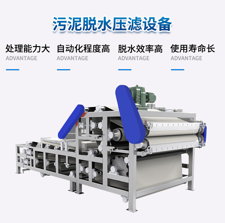 污泥脱水机是一种新型的污泥脱水设备,它的特点是自动化程度高,能实现在一定时间内连续工作。采用气动滤网带校正装置。适用于洗砂厂、造纸、水产等污泥脱水,可采用不锈钢材质,耐腐蚀性强。