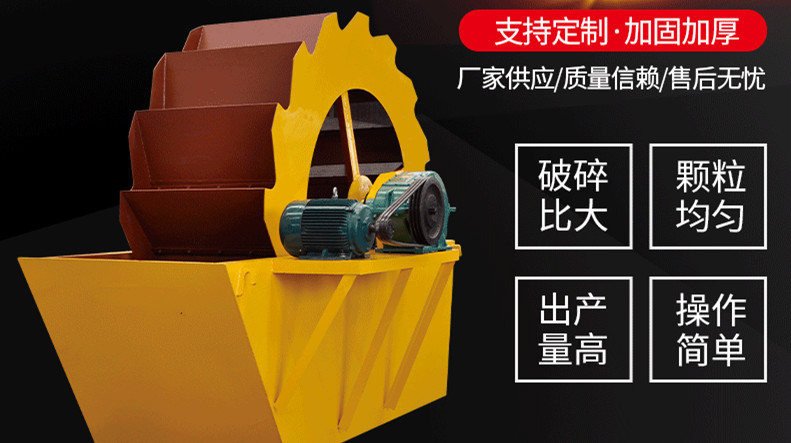 当轮式洗砂机未及时维护或洗砂机转轴未到达要求的平行度时,齿轮简单磨损损坏,严峻时可能损坏轴承。因而,在装置洗砂机时,应留意装置规范和距离,以确保设备的稳定性,及时检查轴承是否损坏,检查密封圈的磨损程度,如有磨损,应及时更换,最终检查各部件的润滑油,使油位保持在测量线以上,清洁无污染。
