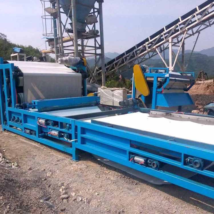 滤板和隔膜板之间漏液。污泥脱水机在工作时,滤板和隔膜板之间的漏液是常见的故障之一,其主要原因有:料泵压力流量高;油压不足;滤布褶皱或滤布上破洞;滤板和隔膜板密封面夹有杂物等。其处理方法也比较简单,根据故障原因可重新调整泵压力和流量,增大油压,在压滤过程中经常保证滤布的清洁和平整,发现滤布有破洞及时更换,用尼龙刮刀清两板密封面间的杂物,每班在后一个循环完成后,应对每块滤布进行冲洗。