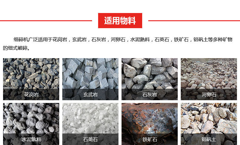 适用物料:广泛适用于花岗岩,玄武岩,石灰岩,河卵石,水泥熟料,石英石,铁矿石,铝矾土等多种矿物的细式破碎。