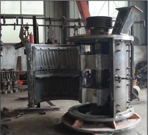河卵石制砂机的工作原理,简单一点说是石打石的原理。物料由进料斗进入河卵石制砂机,经分料器将物料分成两部分,一部分由分料器中间进入高速旋转的叶轮中,在叶轮内被迅速加速,其加速度可达数百倍重力加速度,在高速离心力的作用下,然后以60-70米/秒的速度从叶轮三个均布的流道内抛射出去,同由分料器四周自收落下的一部分物料产生高速撞击与粉碎,然后一起冲击到涡支腔内物料衬层上,被物料衬层反弹,斜向上冲击到涡动腔的顶部,又改变其运动方向,偏转向下运动,从叶轮流道发射出来的物料形成连续的物料幕。