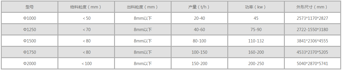 进料粒度:120mm-190mm